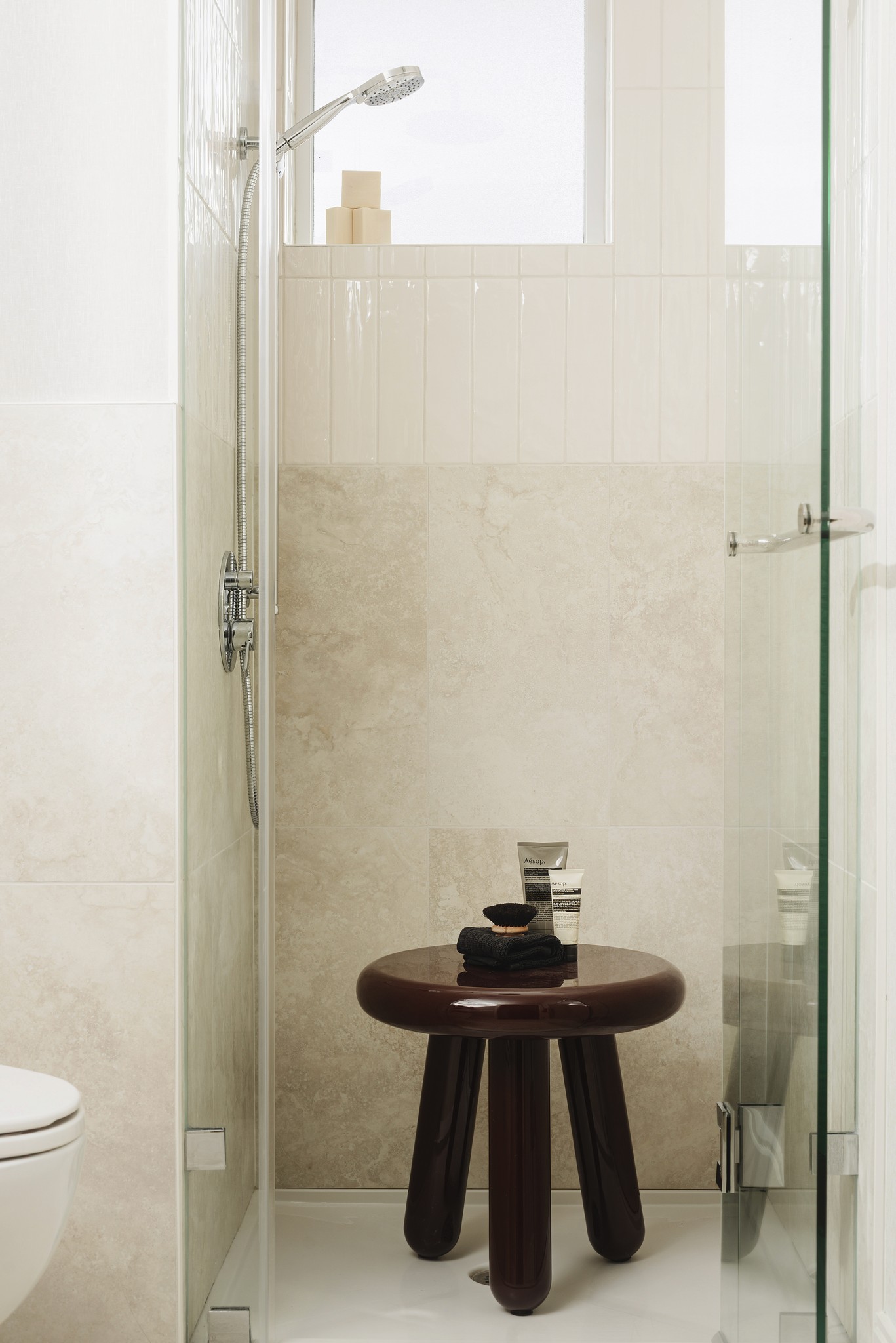 Frameless glass enclosures in primary ensuite